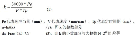 本文設(shè)計(jì)了一系列速度檔位,最低檔位就是起跳速度,然后逐步增加到V,每檔速度同時(shí)對(duì)應(yīng)一個(gè)脈沖數(shù)組,及走過多少脈沖后切換到另外一個(gè)速度檔位。脈沖與速度構(gòu)成的曲線可以是梯形曲線、指數(shù)型加減速曲線或S 型加減速曲線。每個(gè)速度檔位都按照相同的比例縮小速度V,三軸都按照相同的比例,就滿足了線性插補(bǔ)原理,可以在保證空間軌跡的同時(shí),各軸按照相同的加減速方法進(jìn)行加減速。但計(jì)算速度檔位必須在加工線段前進(jìn)行,而且不能有除法運(yùn)算,否則一般的單片機(jī)難以達(dá)到實(shí)時(shí)性的要求。按一定的比例縮小V 必須用到除法,要避免除法運(yùn)算就只能采用移位運(yùn)算來代替。由式(1)~(3)可知,k 與V 成反比,而n 和dn 分別對(duì)應(yīng)k 的整數(shù)和小數(shù)部分。假設(shè)要得到V*p/q 對(duì)應(yīng)的n 和dn,其中p、q 都是自然數(shù)且p<q。則k’=k*q/p,要用移位來代替除法必須p=2m,而且要爭取各速度檔位相對(duì)均勻。