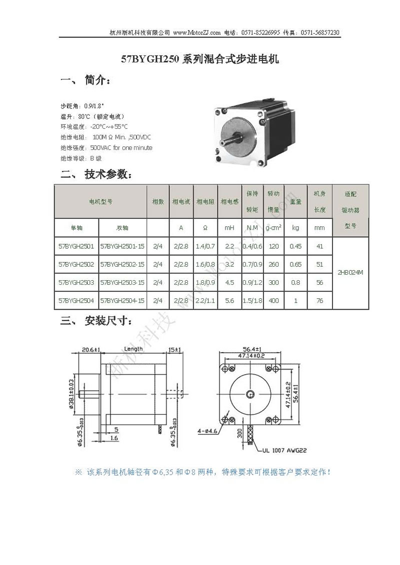 57BYGH250系列兩相混合式步進電機說明書